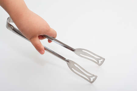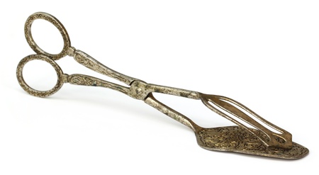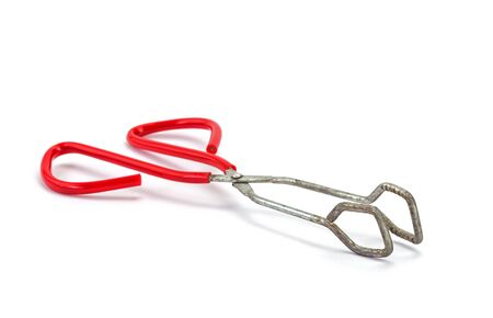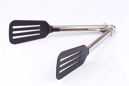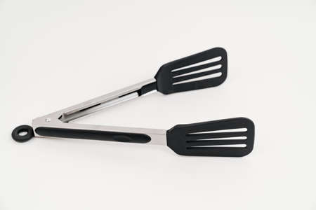 Pancake tongs on a white surface. Tongs isolated on white background.