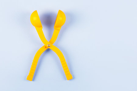 Toy for children to make snowballs on a blue background. Childrens winter game to make snowballs. Plastic Tool
