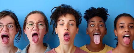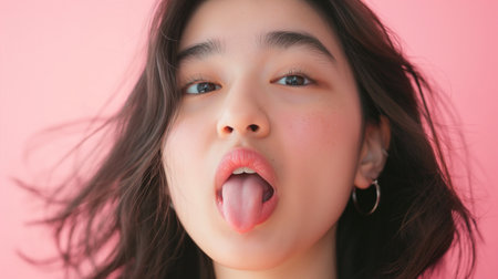 A woman with long tongue sticking out of her mouth, AI
