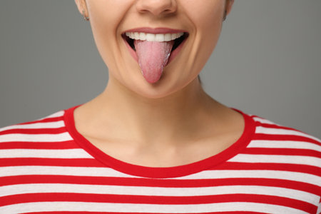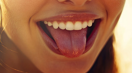 Close-up Of A Womans Face Showing Her Clean Tongue