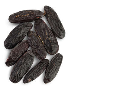 Tonka bean isolated on white background. Bean of Dipteryx odorata. Top view with copy space for your text. Flat lay