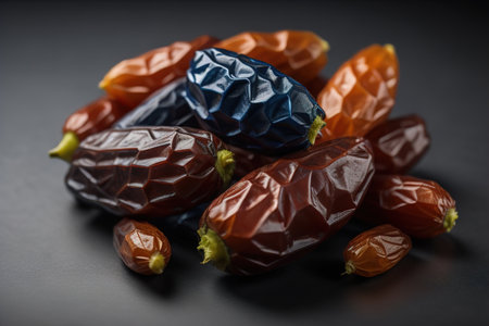 Dried fruits of date palm on a solid color background. Toned. ai generative