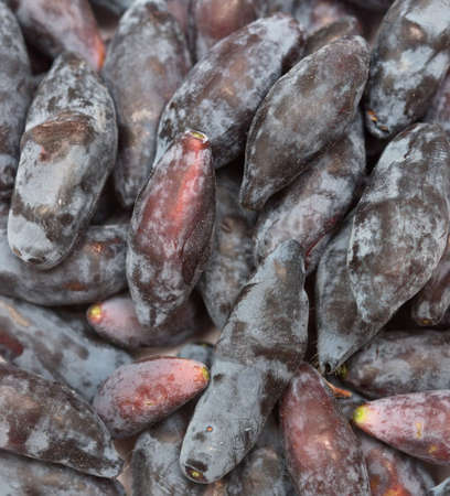 Honeyberries background. Far Eastern delicacy. Macro