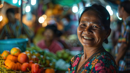 Market Glow A Radiant Smile Amidst Vibrant Chaos