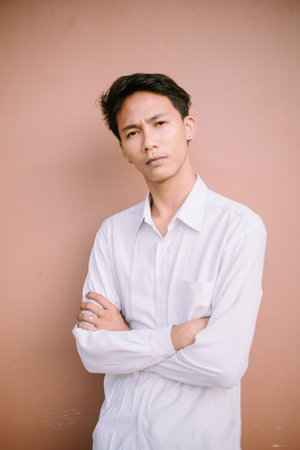 Portrait of young Asian man with melancholic eyes