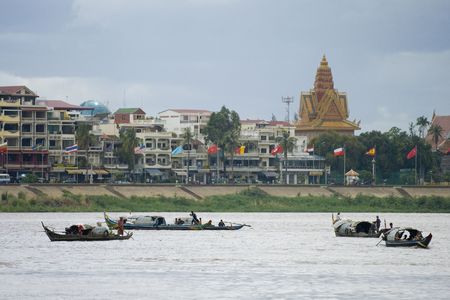 Phnom Penh, Cambodia - January 9, 2020: View of the Mekong River.