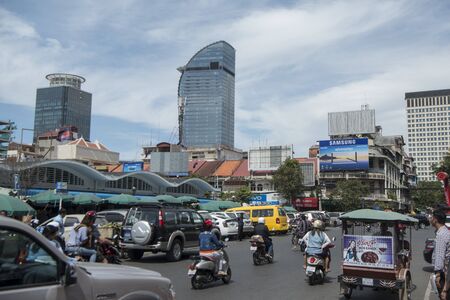 Street scene on a road in the city of Phnom Penh of Cambodia. Cambodia, Phnom Penh, November, 2017,