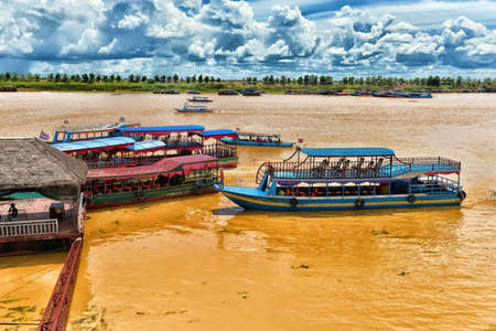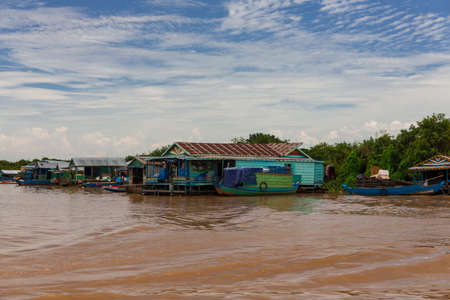 LAKE TONLE SAP, COMBODIA - 28.06.2017: Chong Knies Village, Tonle Sap Lake, the largest freshwater lake in Southeast Asia