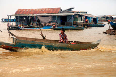 Boat riding in the floating village in tonle sap lake, in Cambodia