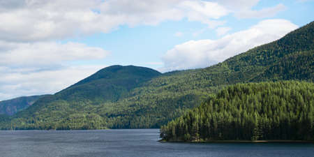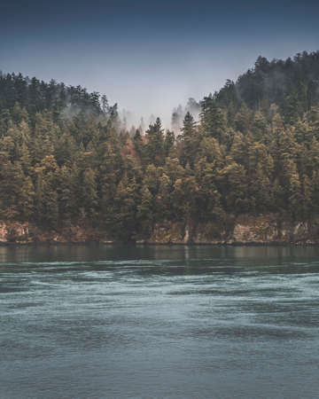 Beautiful forest on the coast. Photo taken from Ferry between Victoria and Vancouver in Canada