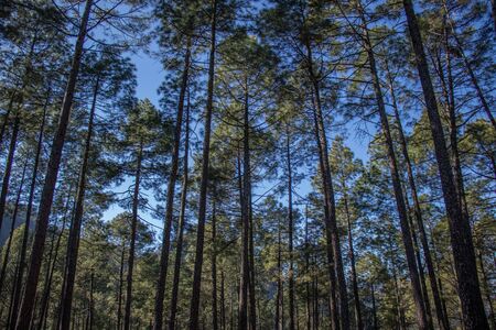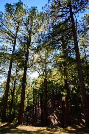 Pine forest on slopes of Caldera de Taburiente national park at La Palma, Canary islands, Spain.
