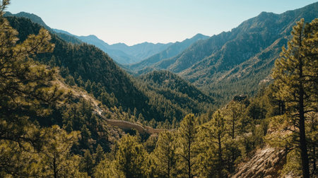 Serene View of Verdant Mountain Landscape with a Clear Blue Sky Above