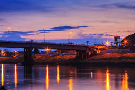 Beautiful long concrete bridge at sunset twilight