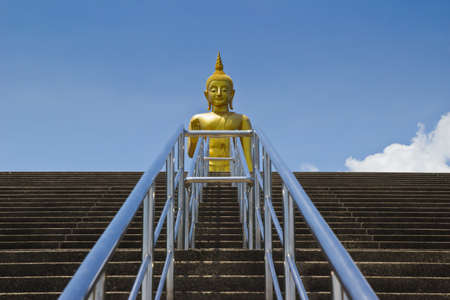 Big golden buddha statue with blue sky, Thailand