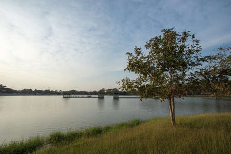 ROI-ET, THAILAND - APRIL 17, 2019 : Bung Plan Chai Park, public park in the Roi-Et city center.