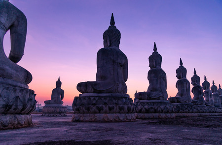 sunset at Buddhist park in the Phutthamonthon district, Buddha Monthon. Nakhon Pathom Province of Thailand.