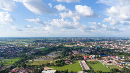 Aerial view of residential buildings, Ratchaburi skyline, Thailand. Urban city in Asia. Architecture landscape background.