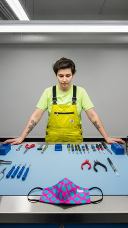 Workshop Table with Electronic Tools and Components in a Modern Lab.