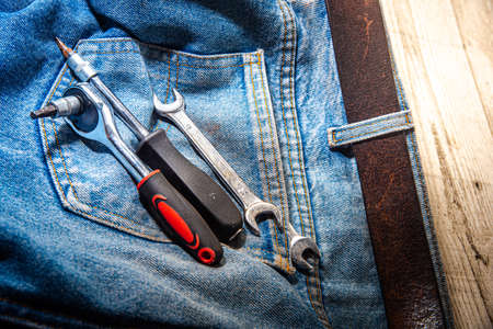 Screwdrivers in the pocket of blue jeans