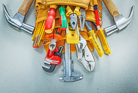 Building belt construction tooling on concrete background.