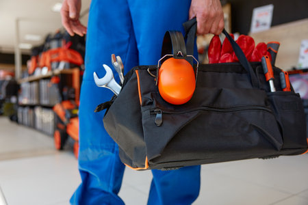 Cropped shot of ergonomic bag for work tools and personal protective equipment
