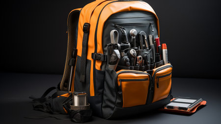 modern military backpack with tools for the work