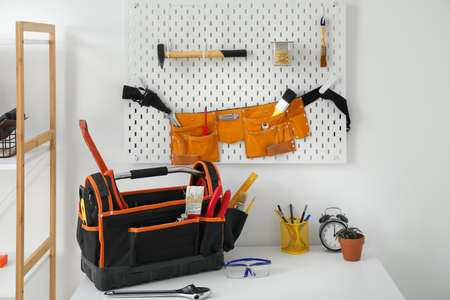Tool Belt With Tools Hanging on Wall
