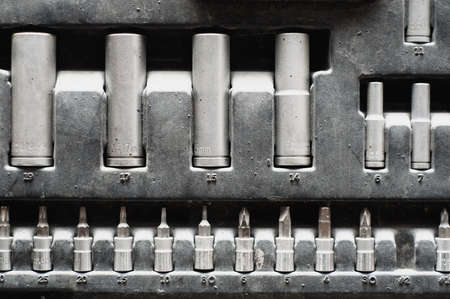 Vintage set of adjustable metallic keys for automotive industry, mechanic in factory