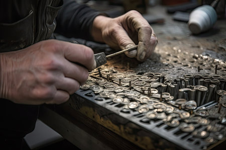 person, crafting intricate metalwork for foundry products, created with generative ai