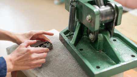 Medium shot focusing on the stamping process of various custom bottle closures highlighting craftsmanship in creating bespoke packaging solutions.