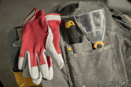 Work tool and special clothing for the painter in the process of home renovation inside the building