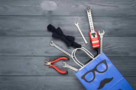 Happy father's day concept. Tools and men's accessories. Gift to dad.