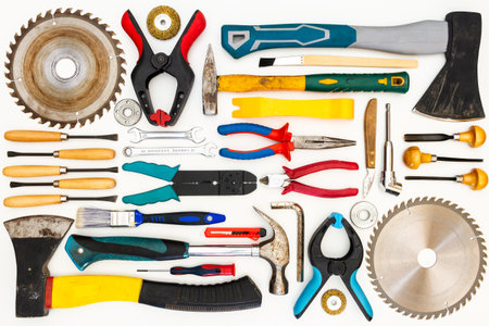 handyman tools on white table