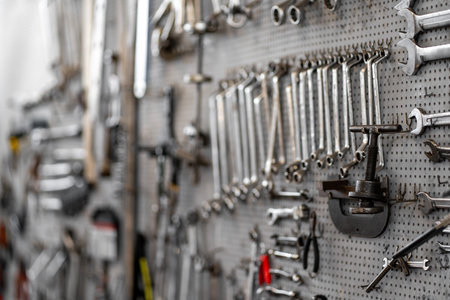 Workshop equipment garage master instruments tools tool craft craftsmanship repair service car mechanic business toolbox wrench repairing engineering hammeer manufacturing fix skill wall mount