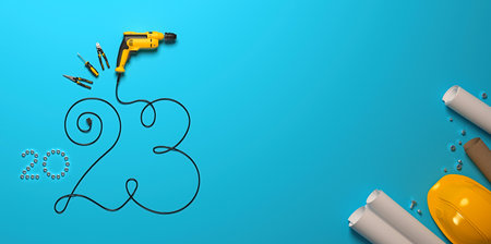 Construction and building equipment background of various tools with copy space