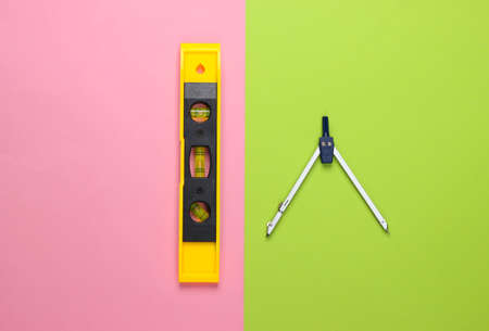 Compass, compass, ruler and pencil on a white background.