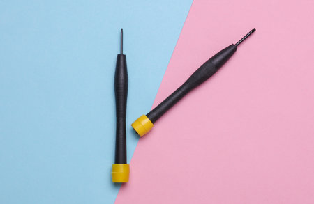 Screwdriver on a blue-pink pastel background