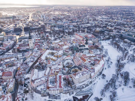 Aerial view of old City Tallinn Estonia in winter day