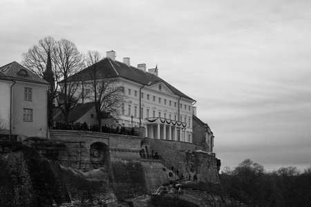 Toompea castle which was erected on the foundations of the crumbling eastern wing of the fortress built on this site in the 13th and 14th centuries. Now it is a Parliament House. Tallinn, Estonia