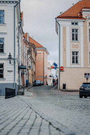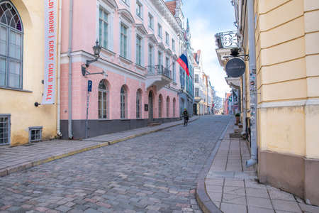 Road leading to the French embassy in the old town in Tallinn, Estonia