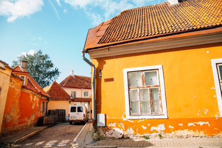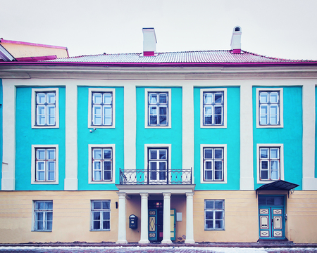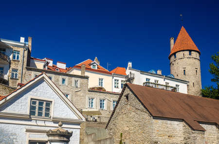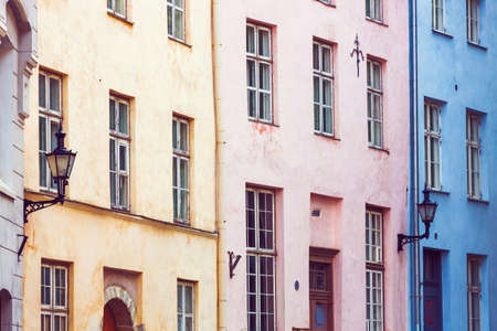 Lovely houses in Tallinn, the capital of Estonia. Multi-colored walls of traditional houses with windows. Travel destination