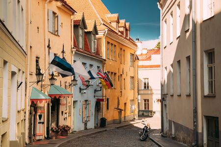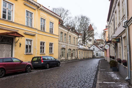 Street with historical houses in Tallinn old town, Estonia