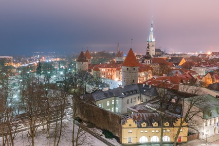Aerial view of old city Tallinn Estonia in winter day