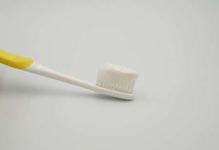toothbrush with toothpaste on gray background, it's representing for daily dental care