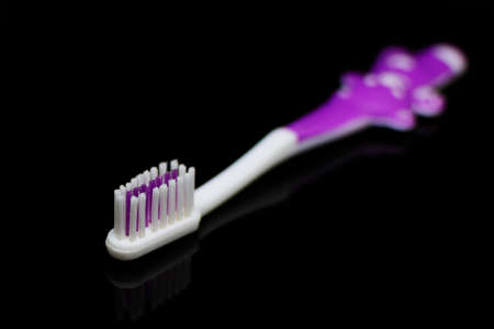 toothbrush for a child reflected on a black background