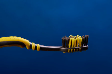 dirty toothbrush cover in yellow and dried toothpaste black background AI generated