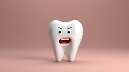 3d animated tooth character expressing discomfort from eating sour candy on a clean white background