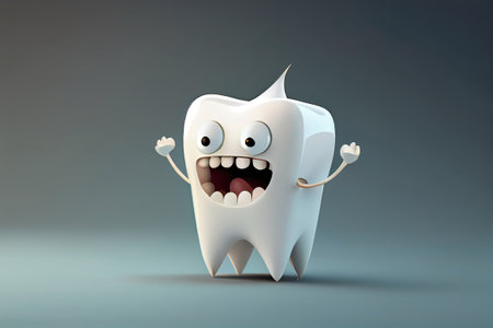 A cute tooth character with a smiling face stands cheerfully, bringing joy and fun.