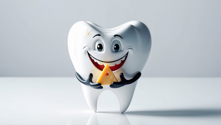 funny cartoon tooth character with a piece of cheese