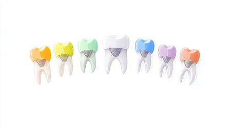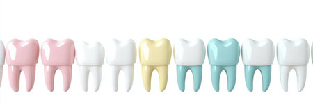 High-resolution image of dental tooth models showcasing a variety of colors and textures. Ideal for educational and professional use in dentistry.